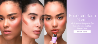 Aplica el Multi-Stick Dusty Petal, Cherry Bomb o Peach Pink para usar como blush ❤️ en los pómulos o manzanas de tu cara, y como sombra comienza en el párpado móvil y arrástralo hasta el párpado fijo de tu ojo. También puedes utilizarlo en labios para sellar ese look natural.